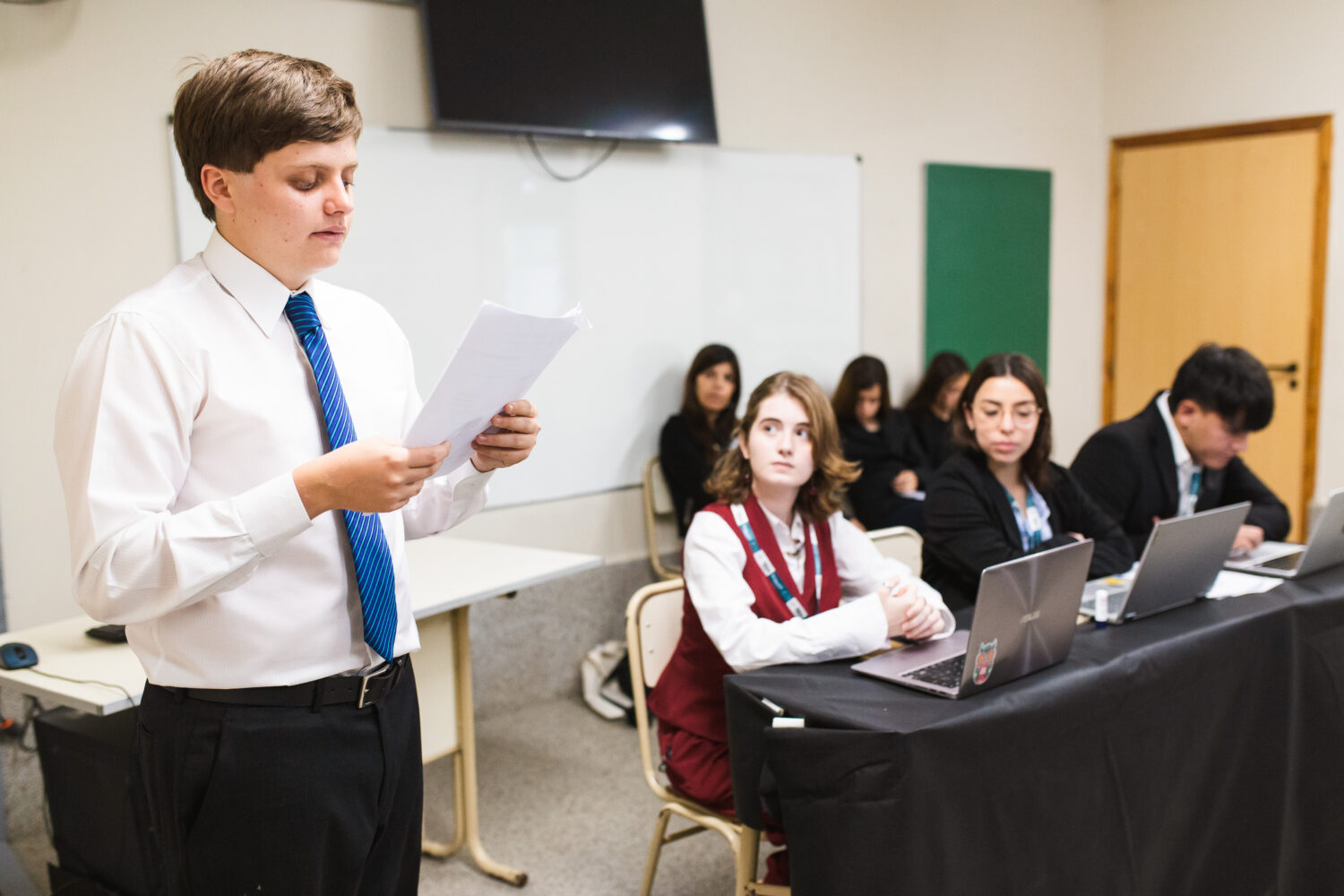 Durante la jornada, los estudiantes representaron países, debatieron temas globales y protagonizaron una experiencia formativa de gran nivel académico. El evento se desarrolló íntegramente en idioma inglés, lo que constituyó una valiosa oportunidad para fortalecer las competencias lingüísticas en un entorno internacional y altamente exigente.